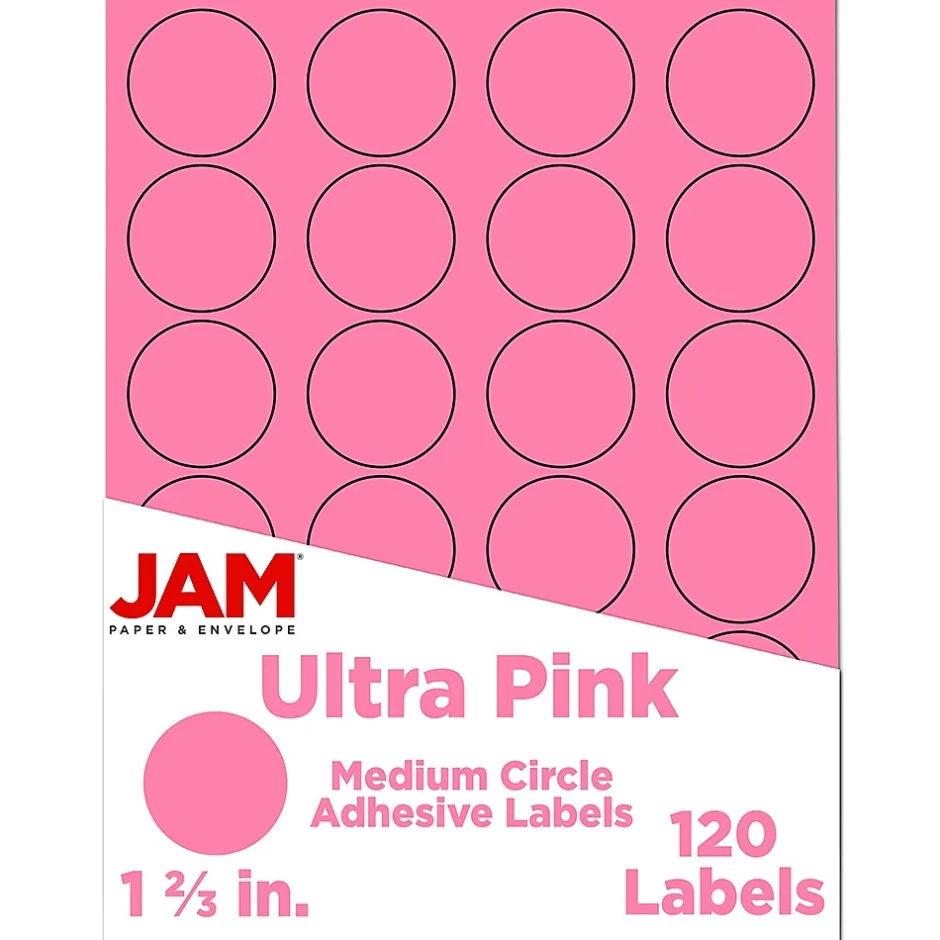 JamĀ® 1 1/2″ Circle label sticker seals in ultra pink color is designed easily peel and stick for convenient usage. Label is printer friendly and compatible with templates in Microsoft Word, sold as 120 labels.