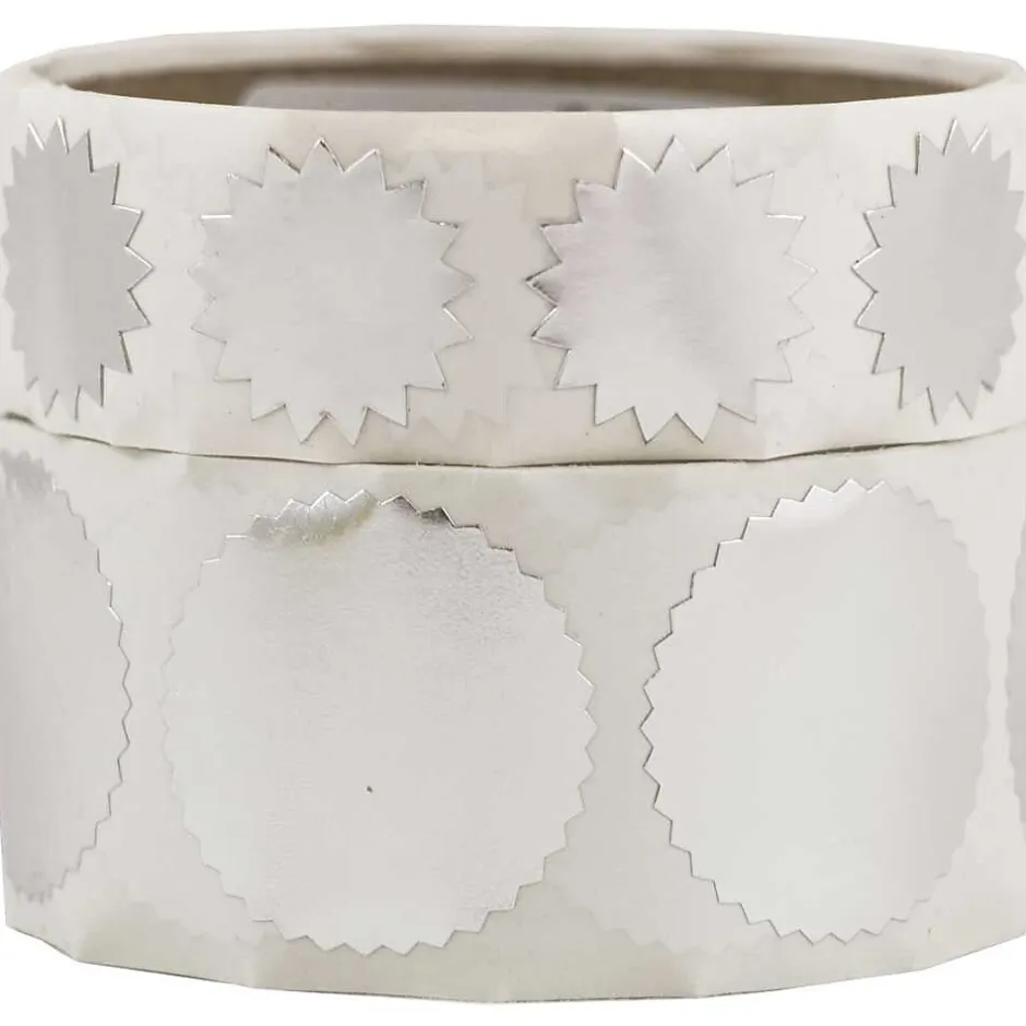 No matter what the message, the JAM PaperĀ® brand carries everything you need to deliver it smoothly and securely. If you’re sending out a wedding invitation, confidential document, or special announcement, closing it with one of these serrated metallic seals will let everyone know that this is no ordinary greeting. The silver color adds a splash of prestige and elegance to your envelope, telling your recipient there’s something important inside. The seals also work for art projects or rewarding a hardworking student. This combo pack contains a roll of 100 small 3/4″ labels, and a roll of 100 large 1 1/2″ labels. Make the packaging as extraordinary as the message itself with these professional seals!