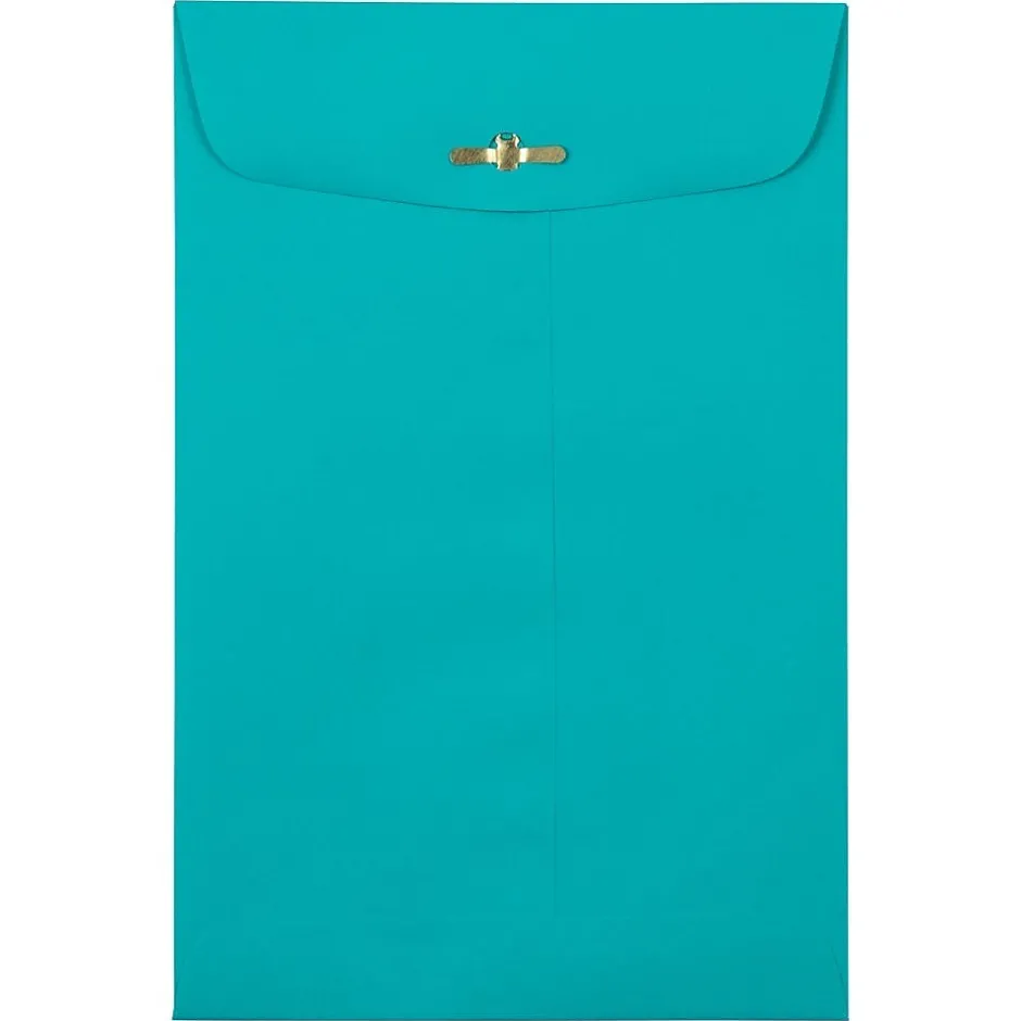 JAM Paper Sea Blue Recycled 6 x 9 Open End Envelopes with Clasp Closures feature a bright and eye-catching shade of sea blue and are made out of high quality, smooth, 30% recycled, 24lb paper. This pack contains an even total of 10 envelopes. Each one measures 6 x 9 inches in size and opens on the shorter end. To keep the contents placed inside of them secure, these envelopes have commercial style flaps with reliable and easy-to-use metal clasp closures. Each one also has an optional-use gum closure for additional reinforcement. Use these envelopes to send letters, documents, promotional materials, invitations, and more!