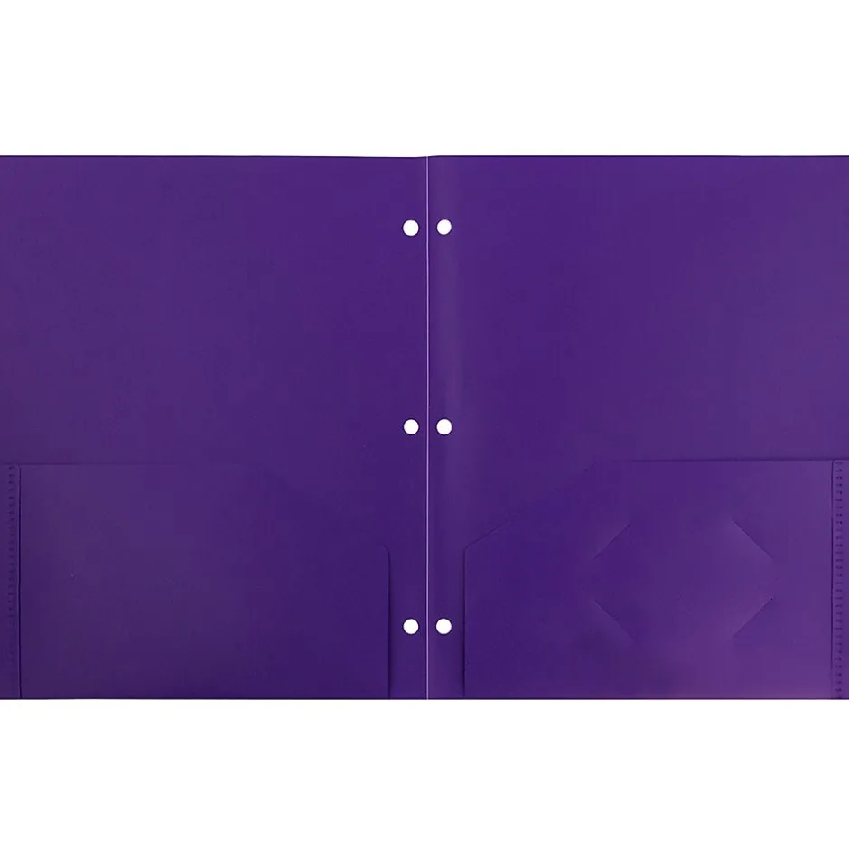 JAM Paper ® Purple Plastic Two Pocket 3 Hole Punched Presentation Pocket School Folders are made out of heavy-duty plastic and feature 3 holes along the edge on the left side for placing them into 3-ring binders! Each one features 2 pockets on the inside and a business card sized slot cut into the right side pocket. Ideal for standard sized documents, these folders measure 9 x 12 inches each. This pack includes an even total of 6 folders! Their bold purple color is sure to serve as a welcome accent and inspiration in your work space. Use them for projects, notes, class handouts, important documents and more!