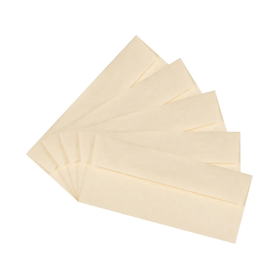 JAM PaperĀ® Parchment Natural Recycled #10 Business Envelopes measure 4 1/8 x 9 1/2 inches in size, which makes them ideal for enclosing standard sized sheets of paper that have been folded into thirds. These envelopes are made out of smooth, high quality, 30% recycled, 24lb paper. Each one features a light brown, natural parchment color. This pack contains an even total of 50 envelopes. To keep the contents placed within these envelopes secure as they make their way through the mail, each one features a straight flap opening and a reliable gum closure. Use these natural colored business envelopes for home, office, and special occasion mailing purposes.