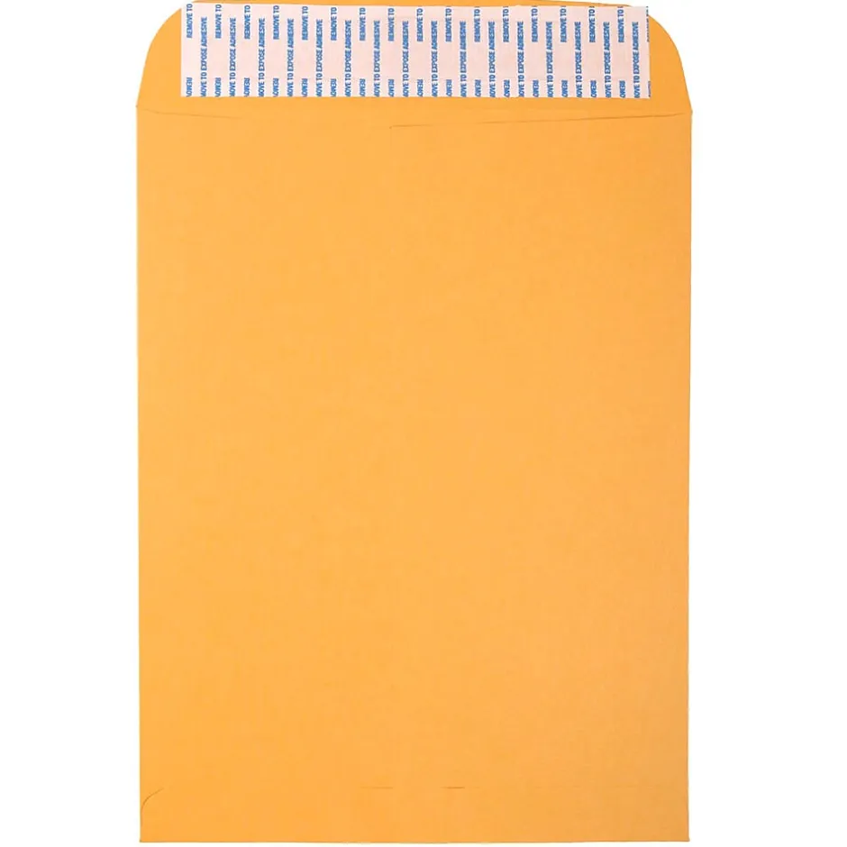 JAM Paper brown kraft envelopes with peel & seal closures measure 9.5 x 12.5 inches in size and are made out of smooth, high quality manila paper. Each one of these envelopes opens on the shorter end and features a reliable, easy-to-use,peel & seal closure to keep the contents placed within secure as they are transported through the mail. A fantastic option for a large number of home and office mailing purposes, these envelopes feature a light yellow-brown craft color. There size makes them great for mailing standard sized and slightly larger documents with no need for folding. They can also be used to mail small items, photographs, catalogues, small clothing articles, donations, promotional materials, and much more! This box contains an even total of 500 envelopes.