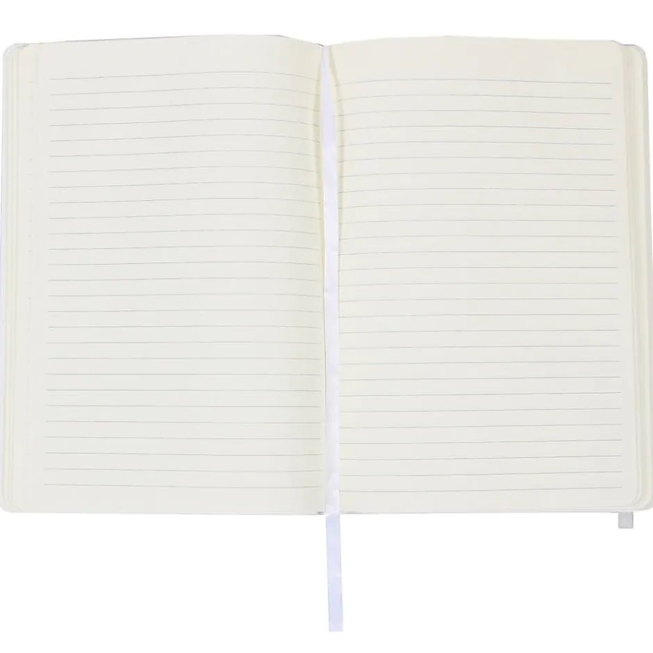 JamĀ® 5 7/8″ x 8 1/2″ Hardcover notebook in white color comes with elastic cover and features simple elastic band closure, handy pocket for protection. Notebook has smooth finish offers fashionable look.