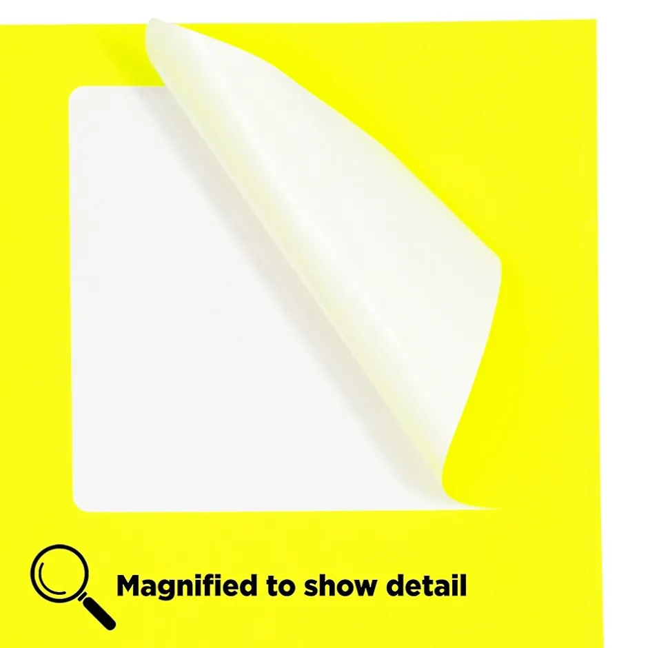 Constructed from smooth paper and easy to peel/stick. Rectangle label is compatible with printing and a bright/bold way to dress up an envelope, sold as 120 labels with 6 per page.
