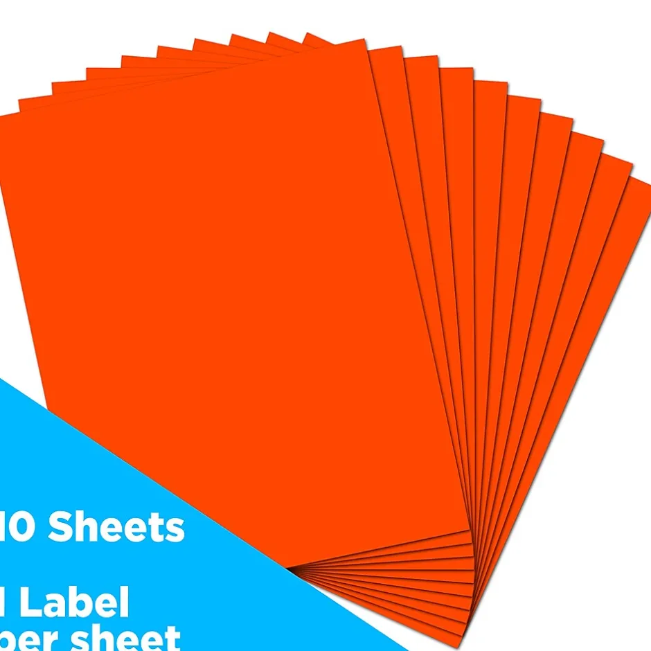 The JAM Paper Large Full Page Labels are an apt choice to add a vibrant touch to your mails and gifts. The labels measure 8.5 x 11 inches, making them perfect for labeling large shipments or mails, or organizing files, boxes and much more. With a brightness rating of 50, the labels are designed to ensure everything you write or print on them is clear and easily readable. They come in a pack of 10. Each label features an adhesive pack panel for easily sticking the labels on any surface. atible with printers, eliminating the need for manually writing the labels or address. Its bright neon red shade adds a vibrant touch to your mails. An adhesive backing eliminates the need for messy glues and makes it easy to stick the labels.