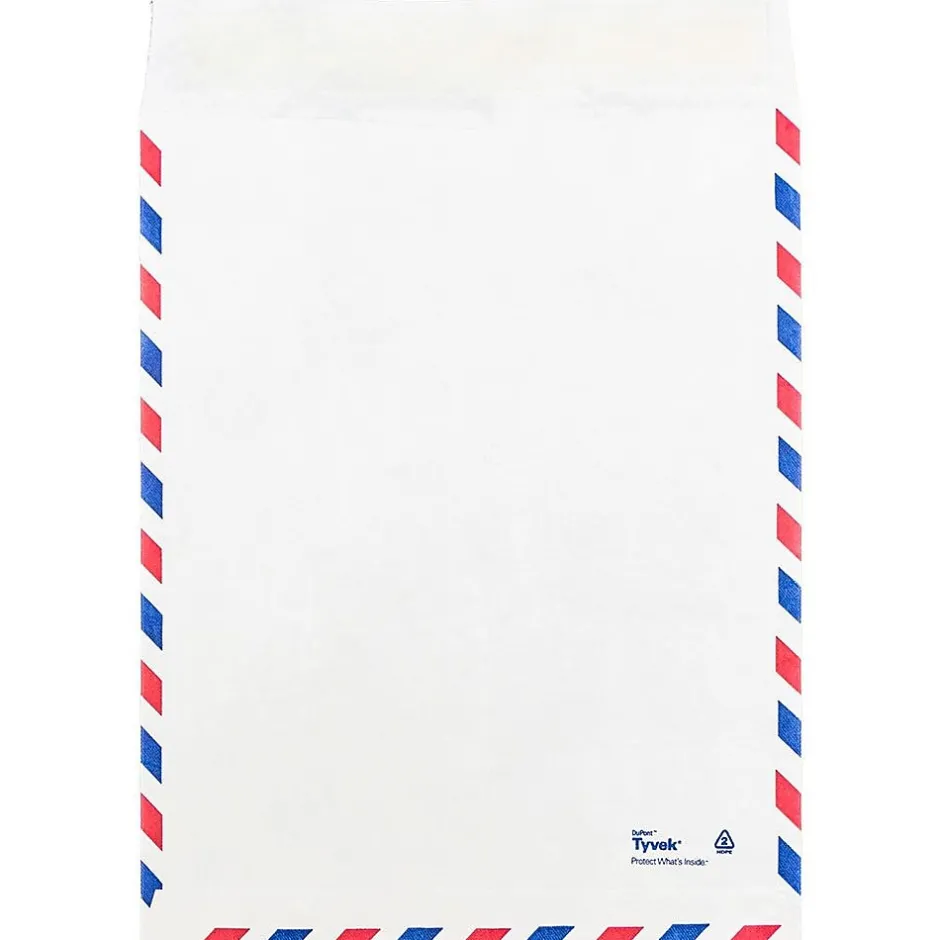 You can rely on JAM Paper® Open End Tyvek® Envelopes to deliver your mail in style and safety. These water and tear-resistant airmail Tyvek® envelopes are fitting for offices, schools, and homes. Anyone can use them, from students and teachers to your boss and you! Whether you are sending brochures or storing important papers, this envelope keeps your contents in one place. This pack contains 10 white Tyvek® envelopes. Each envelope measures 9″ x 12″, has an open end opening (no clasp, gummed), straight flap, self adhesive strip closure, is made from 28 lb. paper, is 10% recycled, and has a smooth finish.