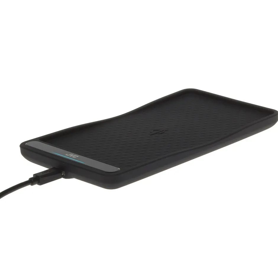 Long, tangled cables can be a tripping hazard. With JVC’s 15 Watt Wireless Qi Charger, you don’t have to worry about getting tangled up in cords. The large pad is textured with a no-slip surface so your phone stays in place.