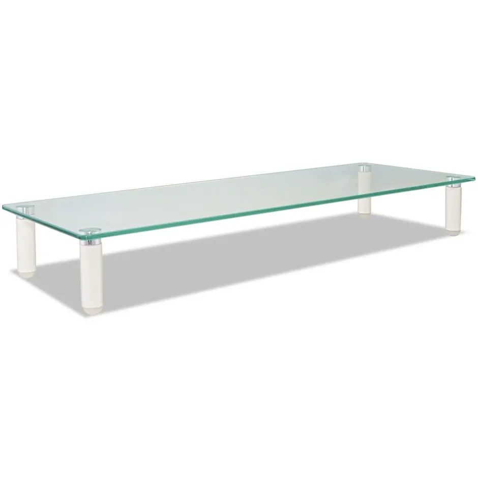 Ample space to place accessories and store keyboard underneath. Tempered glass. Non-skid feet. 40 lb. capacity. Elegant contemporary design.