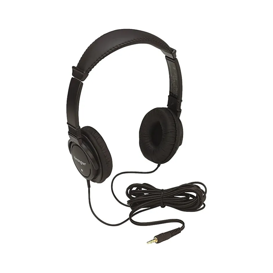 Provide a quality listening experience with these headphones featuring 40-millimeter drivers for deep bass. These headphones contain a padded headband and plush sealed pads for added comfort. Kensington headphones feature flexible ear cups for easy, single-sided monitoring, a gold-plated plug and offer a dynamic range in sound.