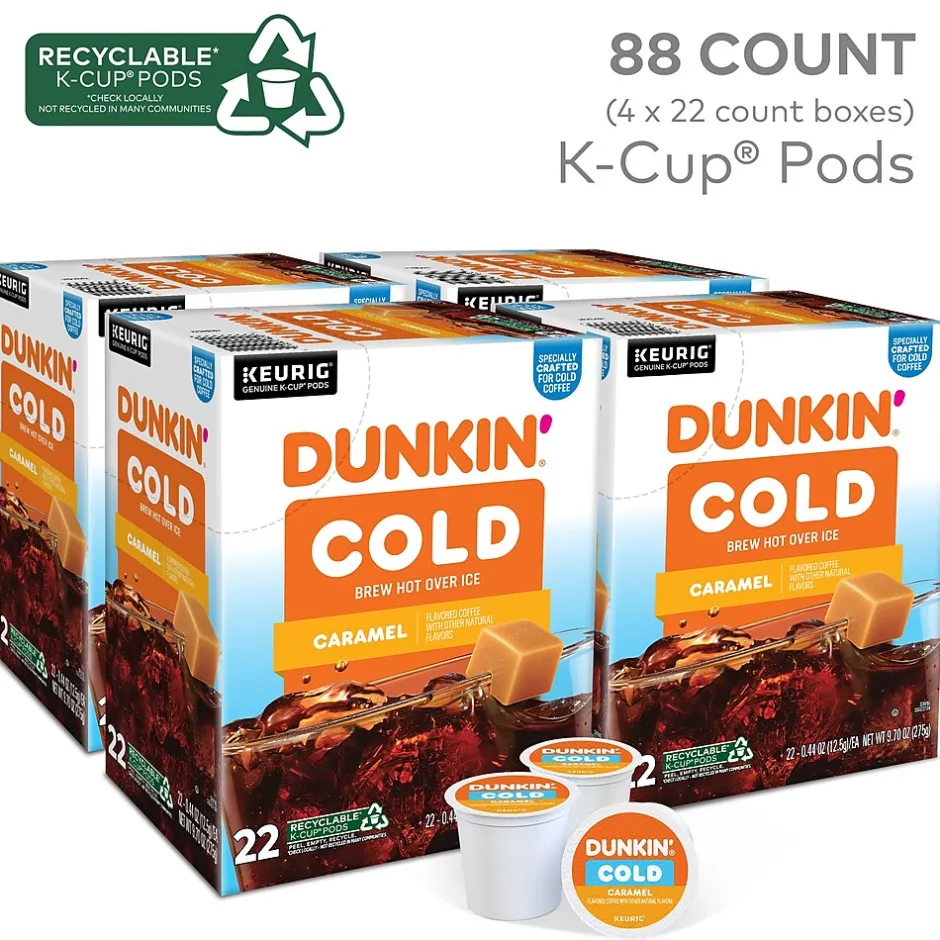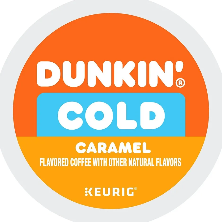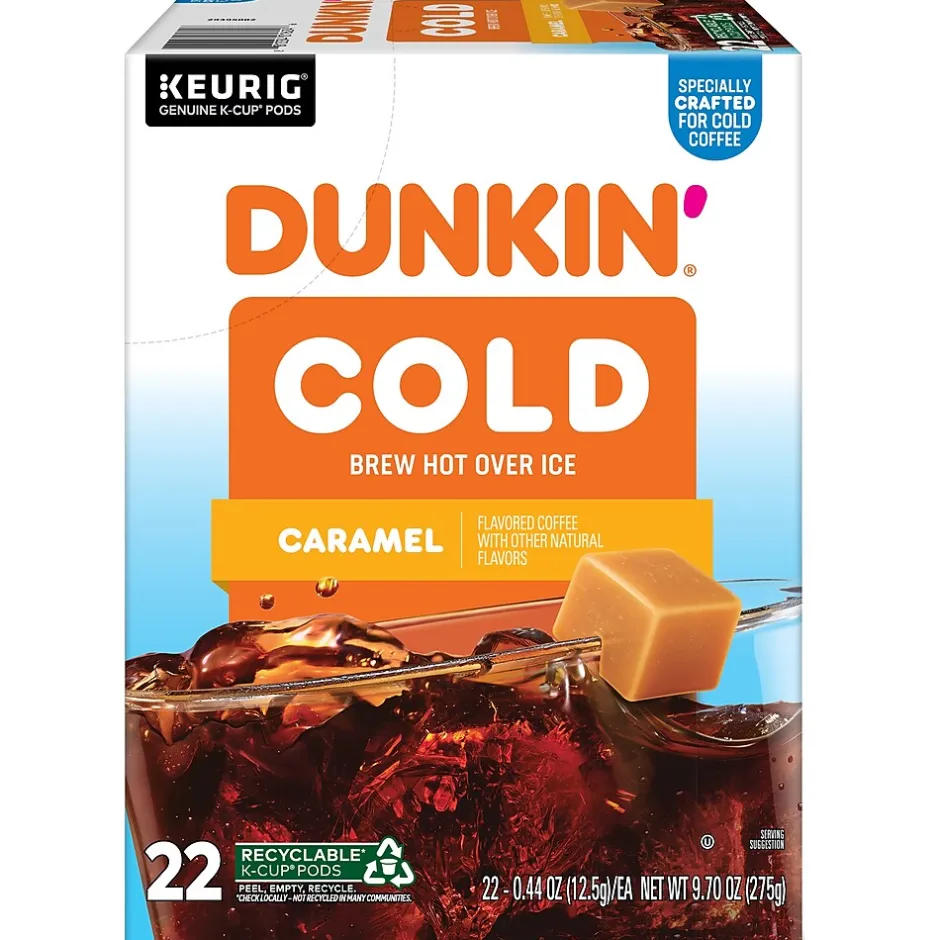 Dunkin’ Cold coffee is specially roasted for cold coffee that stands up to ice. Blended with sweet Caramel flavor, this pod gives you a bold, smooth taste that’s packed with the Dunkin’ flavor you crave. Simply brew it hot over ice, sip back, and relax with your deliciously smooth Dunkin’ Cold coffee at home. To prepare, simply fill a tumbler or mug about 0.75 of the way full with ice, and brew a K-Cup pod directly over it with your Keurig coffee maker (glass not recommended when pouring hot coffee directly over ice). Stir for at least 10 seconds and enjoy. Easy, convenient, and most importantly, delicious.