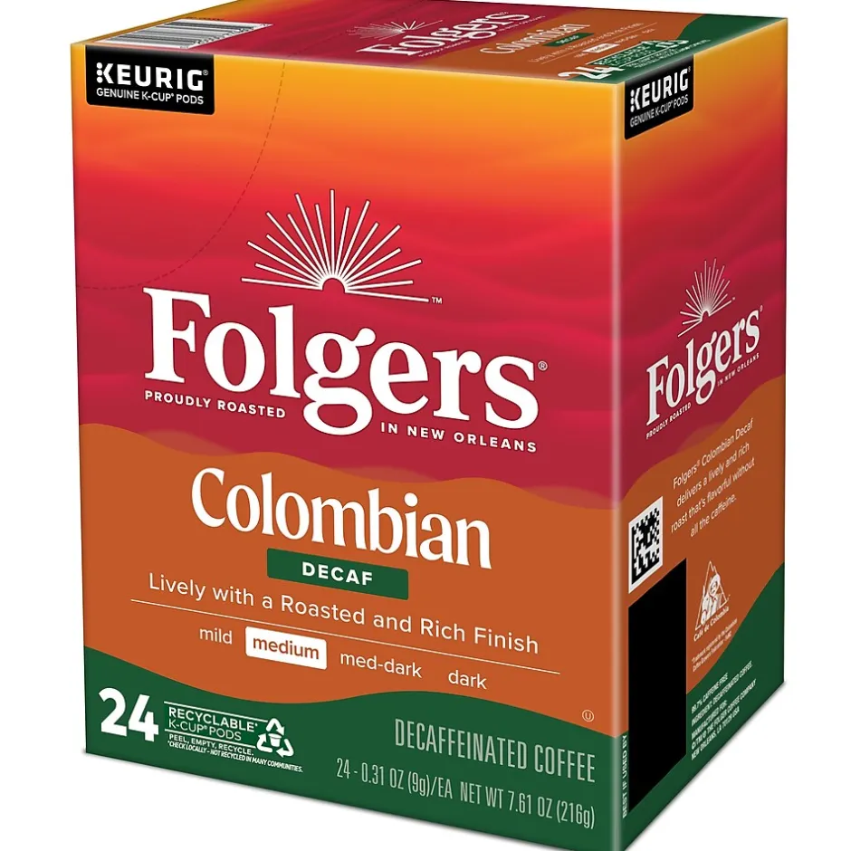 Folgers Colombian Decaffeinated Medium Roast 24-count K-Cup® pods are great for any office or home.