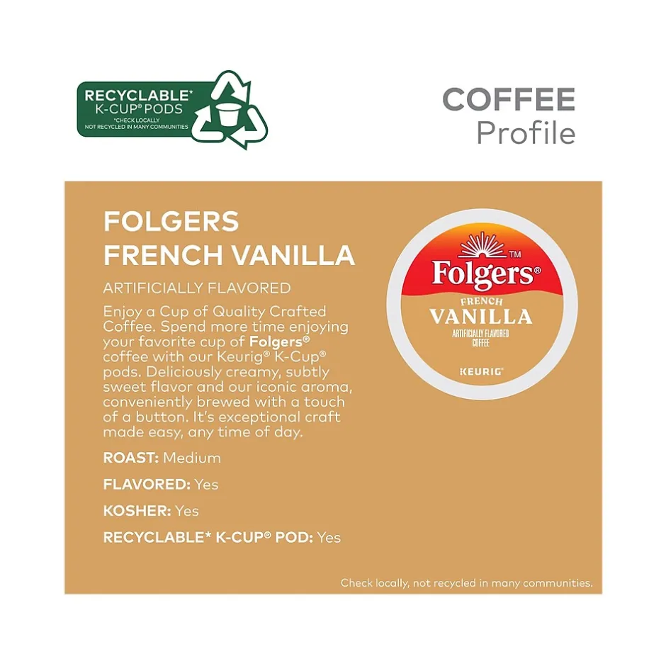 The world’s richest beans are kissed with a smooth vanilla flavor for an elegant finish in Folgers French Vanilla flavored coffee. The best part of waking up is now the convenience in your cup. With Folgers K-Cup pods, there’s no measuring and no filter. Just place your K-Cup pod in your Keurig brewer, and in less than a minute, you can enjoy one perfectly brewed cup of Folgers coffee.