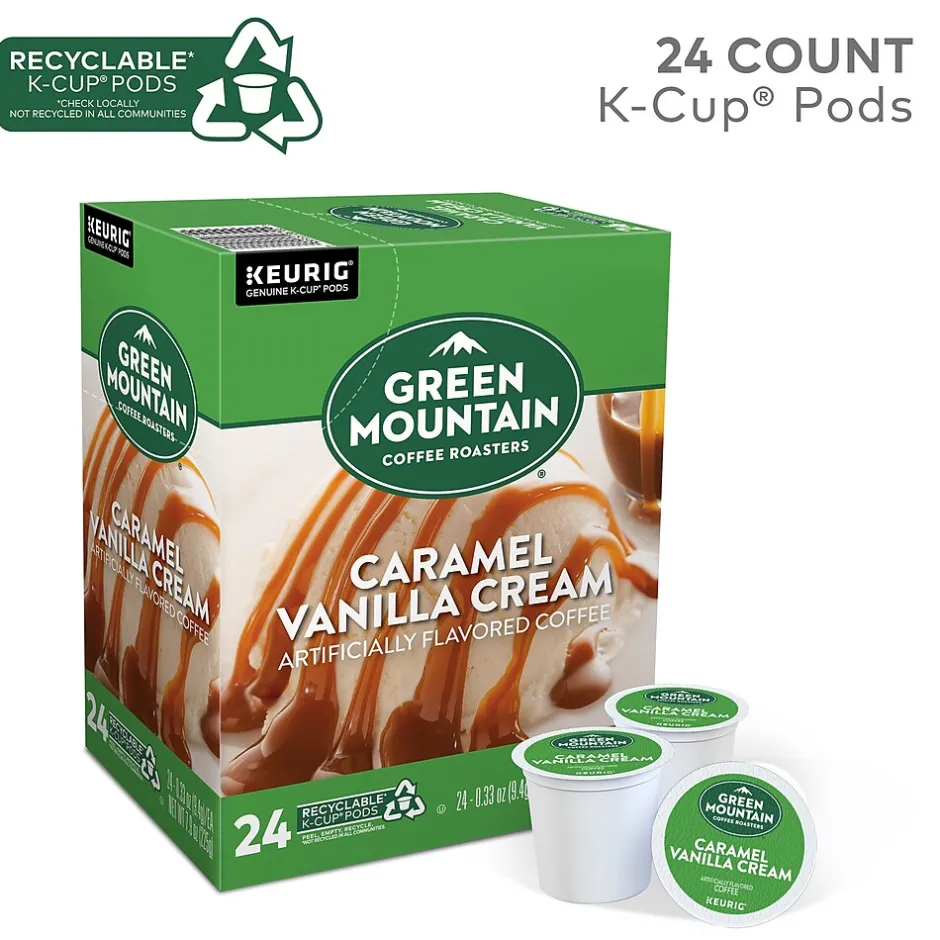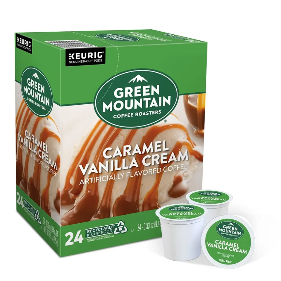 Get your day started with these vanilla caramel cream coffee pods. Packaged in individual pods, this coffee is easy to brew in single cups at a time, and it’s caffeinated to provide a rush of energy. Discover the delicious taste of sweet indulgence. A decadent swirl of buttery caramel, toasty brown sugar, and creamy vanilla flavors.
