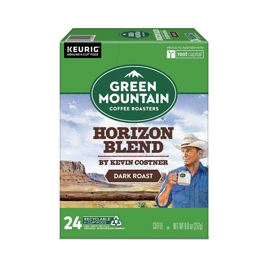 Fix your eyes on the horizon as you take in every sip, courtesy of Kevin Costner. This coffee embodies the bold and boundless spirit of the American west. A dark roast as smooth as it is strong, alive with earthy, smoky flavors that lend true distinction to every cup, just like a certain someone brings true distinction to every role. This unique collaboration with an American icon is a symbol of mutual passion and a celebration of shared commitment to enriching the environment, caring for its people, and giving back to communities. Every Green Mountain Coffee Roasters K-Cup pod reflects the brand’s commitment to source responsibly and is filled with freshly ground coffee beans and brews a deliciously great-tasting cup of coffee, every time. This K-Cup pod is compatible with all Keurig single-serve coffee makers.