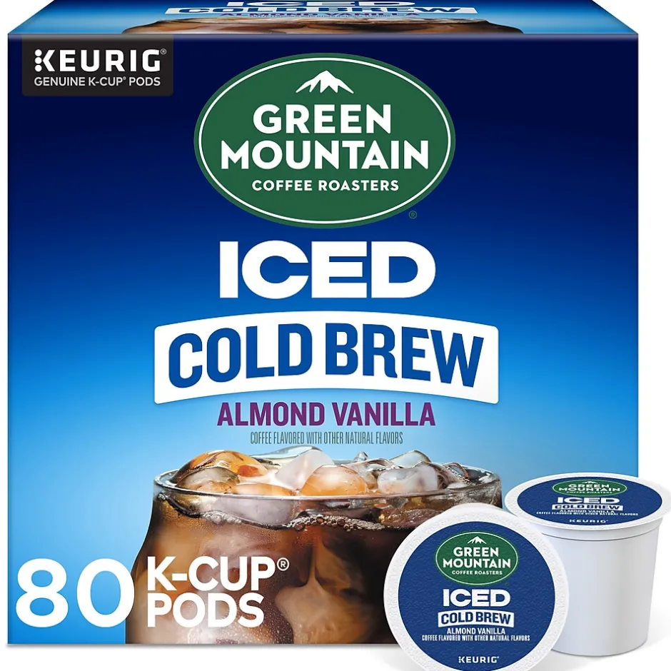 This is cafe-quality cold brew coffee made easy. Green Mountain Coffee Roasters starts with expertly selected 100% arabica coffee beans, steeped for hours, and then captures their peak flavor to infuse every refreshing sip with a rich, smooth taste. The Almond Vanilla Iced Cold Brew coffee is a wonderfully flavorful representation of this remarkable process. Every cup is refreshingly smooth and nutty, with pronounced flavors of buttery caramel and vanilla. Every Green Mountain Coffee Roasters K-Cup pod brews a deliciously great-tasting cup of coffee, every time. That’s because every cup of Green Mountain Coffee Roasters is packed with goodness, reflecting the brand’s commitment to 100% responsibly sourced coffee. This Iced Cold Brew coffee K-Cup pod is compatible with all Keurig single-serve coffee makers. Simple. Delicious. And recyclable.