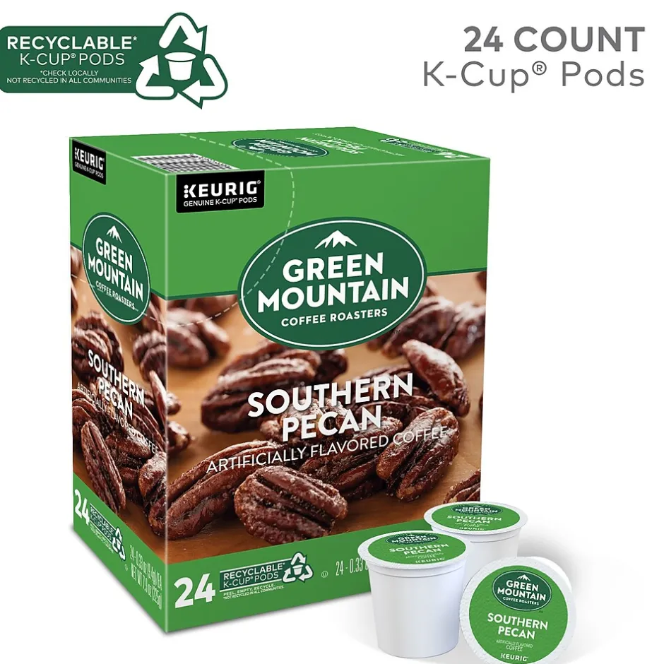 Add to your existing selection of coffees and teas these Southern Pecan coffee pods. The light roast offers a bright start to each workday, while the creamy, buttery flavor profile offers a delicious taste. Each pod is premeasured to provide a single serving, so you don’t have to brew a whole pot to enjoy these Keurig K-Cup Green Mountain coffee pods.