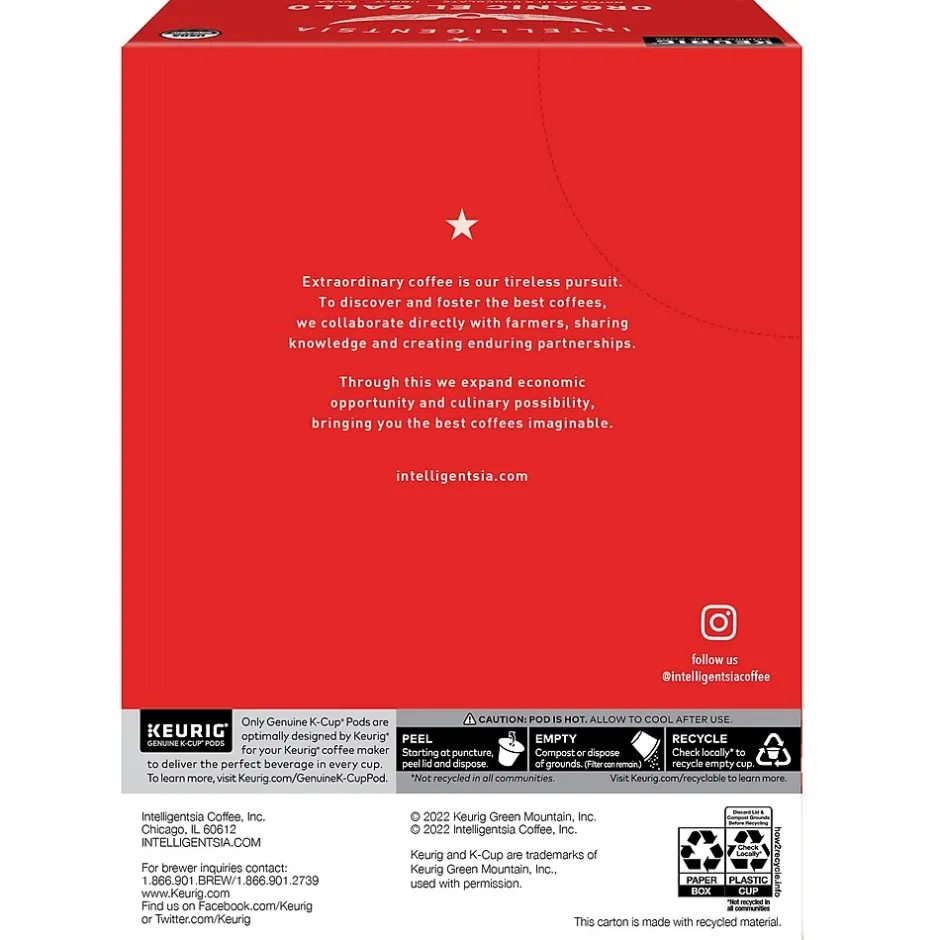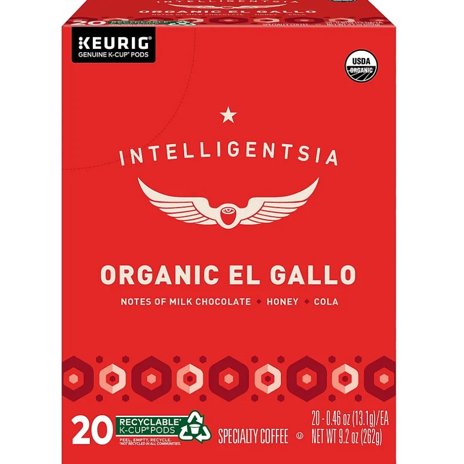Intelligentsia believes that great coffee is not the result of chance. With a commitment to taste quality, Intelligentsia presents the Organic El Gallo coffee. Made with beans from Colombia, Ethiopia and Peru, this blend mixes the flavor of milk chocolate and honey with hints of cola, making it a thoroughly enjoyable first cup of the day. This wonderfully balanced, organic blend has a round mouthfeel with a smooth, candied sweetness. The pod is recyclable in some communities, so you can feel even better when enjoying your Organic El Gallo coffee. Enjoy the same great-tasting coffee you know and love, and when you’re done just peel, empty, and discard. A quarter-century of obsession with quality, more than 15 years of sourcing great coffee the right way, and an authoritative point of view on how to elevate coffee makes Intelligentsia a trusted partner on your coffee journey.