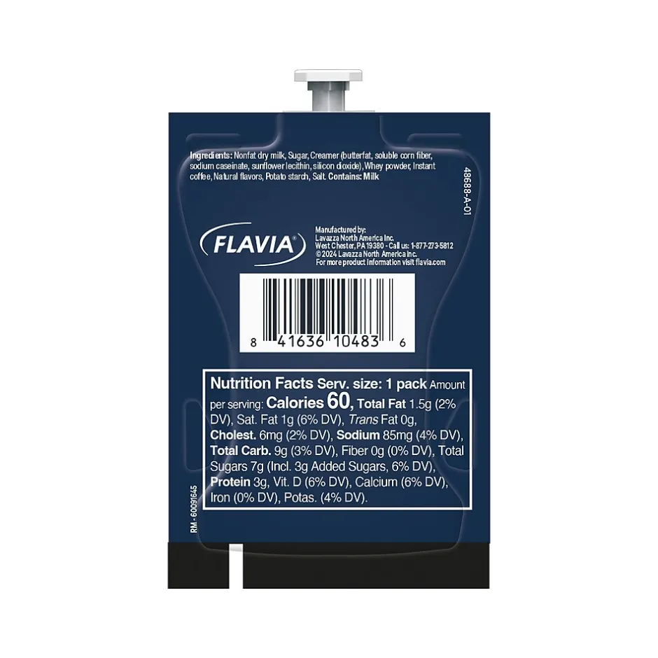 Lavazza brews the Classic Latte coffee with sweet milky notes and velvety milk froth for a classic, refined latte experience. Each Lavazza Latte offers a specialty cafe-style beverage without having to invest in new equipment. Made with Lavazza coffee, real milk, natural ingredients, and sweeteners, these lattes come in the top flavors to be enjoyed all day long.​ Flavia’s jet brewing technology froths the latte from pack to cup in one step, making this easy-to-use single-pack latte the simplest way to be your own barista at the office, workplace, or customer lobby.