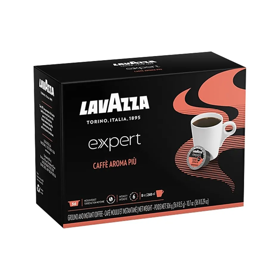 Full and balanced, with gentle hints of roasted cereals that arise in the medium body of its aroma. The Lavazza Expert Caffe Aroma Piu arabica from Central and South America gives a full taste, with an elegant balanced character.