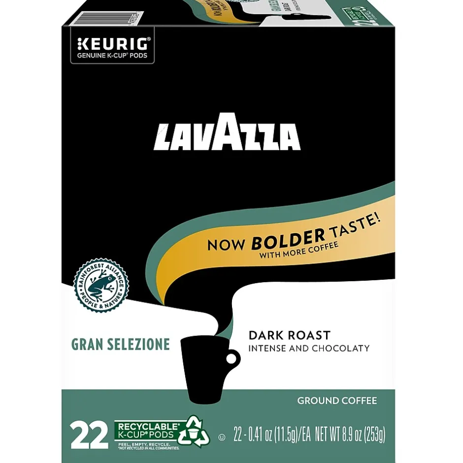 Gran Selezione comes exclusively from Rainforest Alliance Certified™ coffee farms. Made with Arabica beans, this full-bodied blend features intense flavor and chocolate undertones. 100% fine Arabica, 100% sustainably grown.
