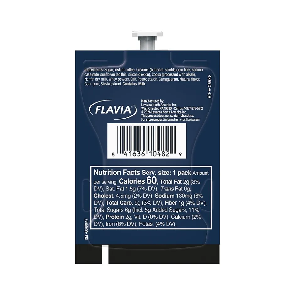 Lavazza brews the Mocha Latte coffee infused with a touch of cocoa and velvety milk froth for a classic, refined latte experience. Each Lavazza Latte offers a specialty cafe-style beverage without having to invest in new equipment. Made with Lavazza coffee, real milk, natural ingredients and sweeteners, these lattes come in the top flavors to be enjoyed all day long.​ Flavia’s jet brewing technology froths the latte from pack to cup in one step, making this easy-to-use single pack latte the simplest way to be your own barista at the office, workplace, or customer lobby.