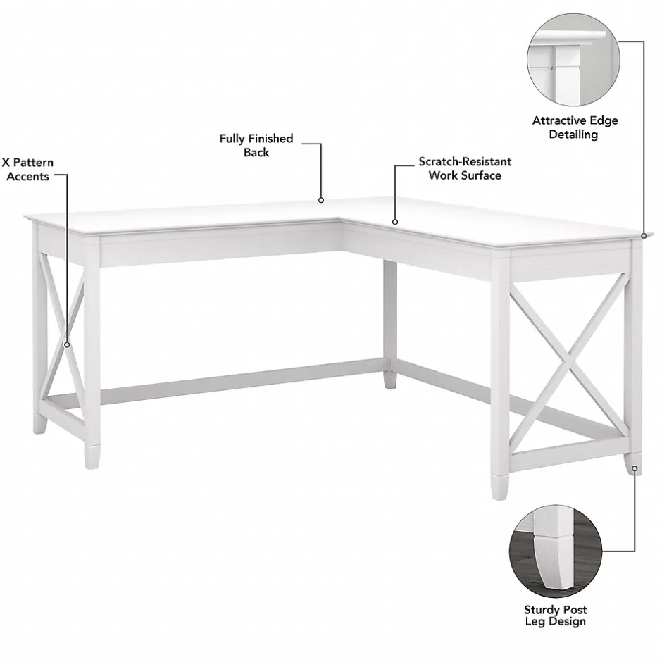 Key West 60"W L-Shaped Desk, Pure White Oak (KWD160WT-03) Computer Desks