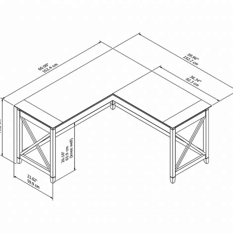 Key West 60″W L-Shaped Desk, Pure White Oak (KWD160WT-03) Computer Desks