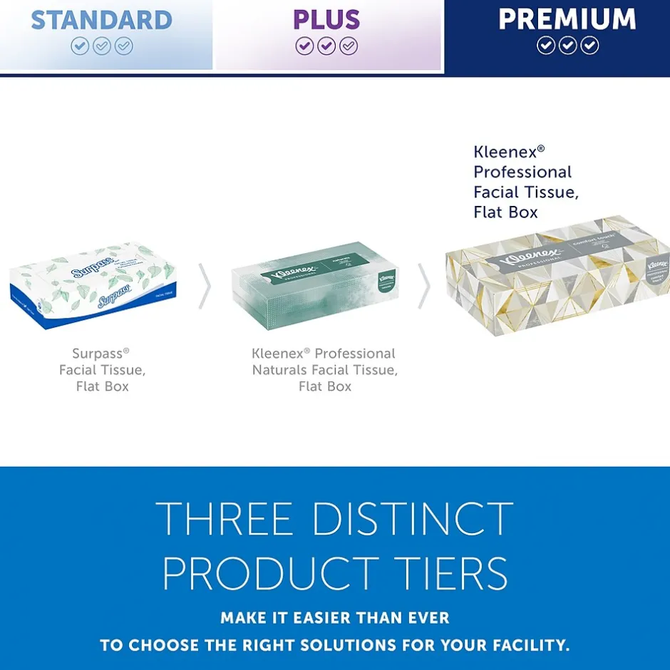 - 125 Tissues/Box, 48 Kleenex® Professional Facial Tissue Boxes/Case; 6,000 Tissues/Case; 2-Ply; White; Flat Facial Tissue Boxes for Business