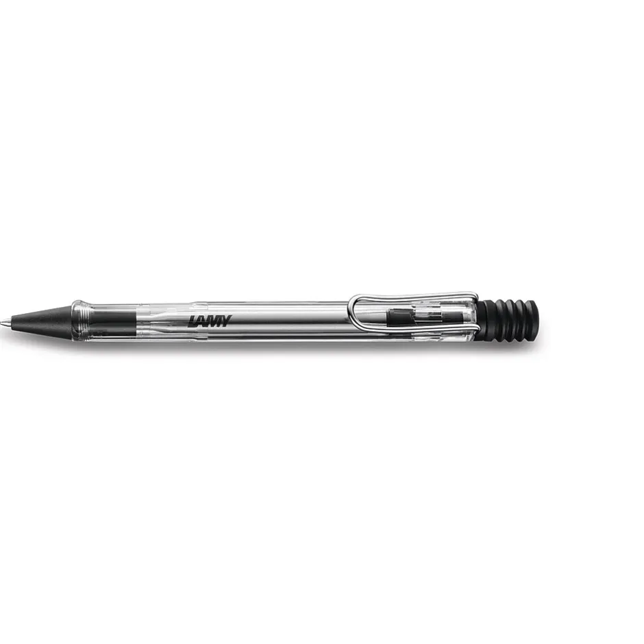 An attractive color, timeless design, and perfect ergonomics are the reasons that make Lamy vista one of the most popular writing implements for young people worldwide. The popular youngster’s ballpoint pen is transparent, allowing for a clear view of its inner workings. Lamy vista features non-fade plastic with metal clip, ergonomic grip, and comes with Lamy M16 black large refill.