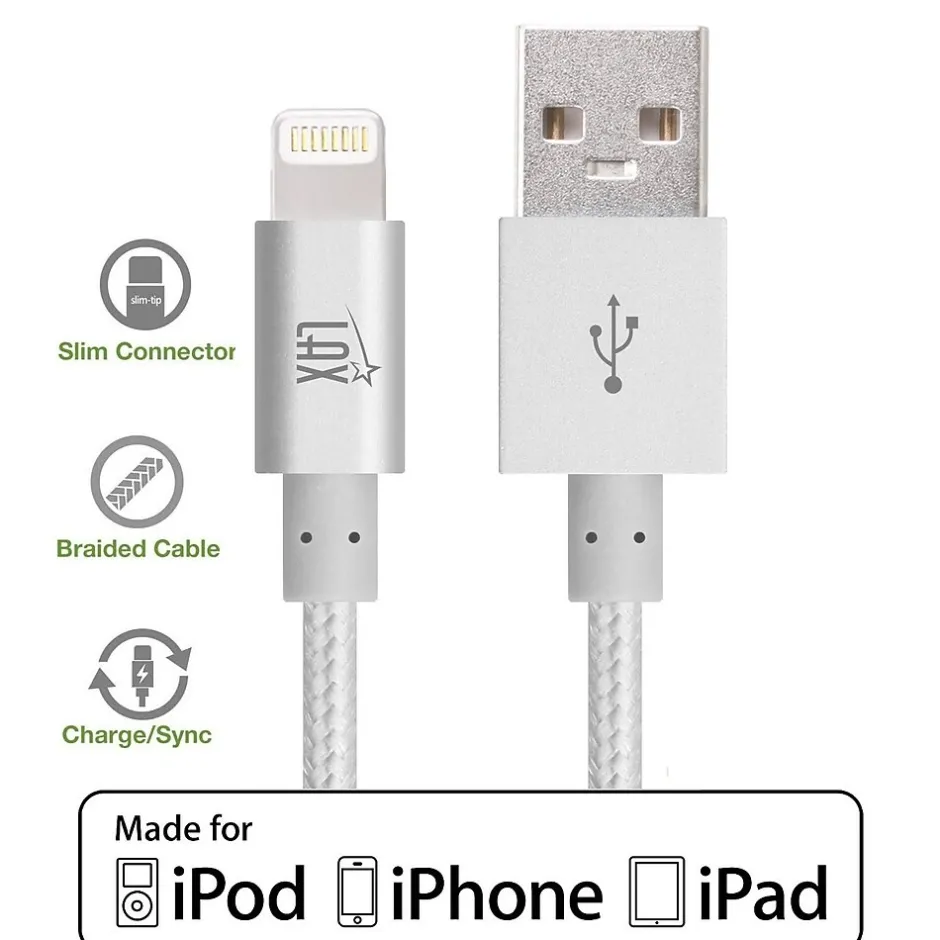2-IN-1 CABLE specifically designed to charge and synchronize Apple Lightning products. STURDY ALUMINUM CONNECTOR. NYLON BRAIDED CABLE. Compatible with iPod iPhone iPad