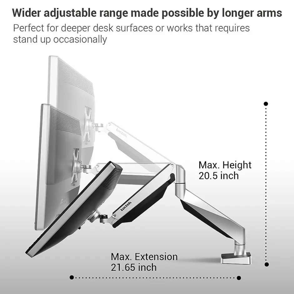 - Dual Display mount to keep your desk and workstation clear
