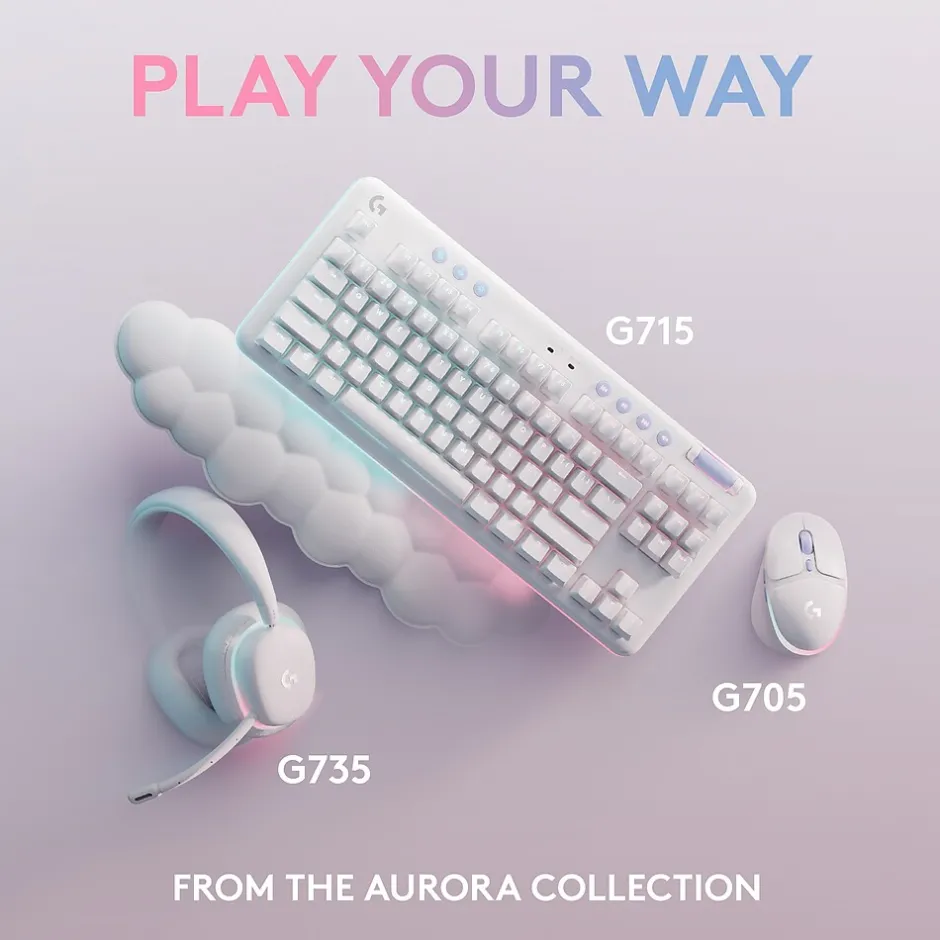 From the Aurora collection, this Logitech headset maximizes comfort and fit for all gamers, including those with smaller heads. Play cozy with cloud-soft headband and rotatable ear cups. The headset is perfect for PCs and mobile devices with LIGHTSPEED and Bluetooth wireless connectivity.