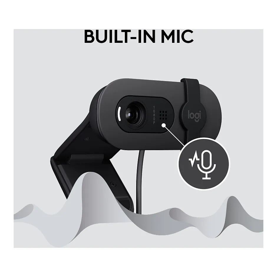 Look, sound, and meet better with the Logitech Brio 100, a simple and affordable webcam that lets you show your best self in video calls. Full HD (1080p) resolution and auto-light balance bring clarity and brightness to your calls, so you look your best. Sound better with a built-in microphone, and get total privacy with an integrated shutter. The Brio 100 comes in fun, sophisticated colors that let you express yourself at your workspace. Made with a minimum of 34% recycled plastic.