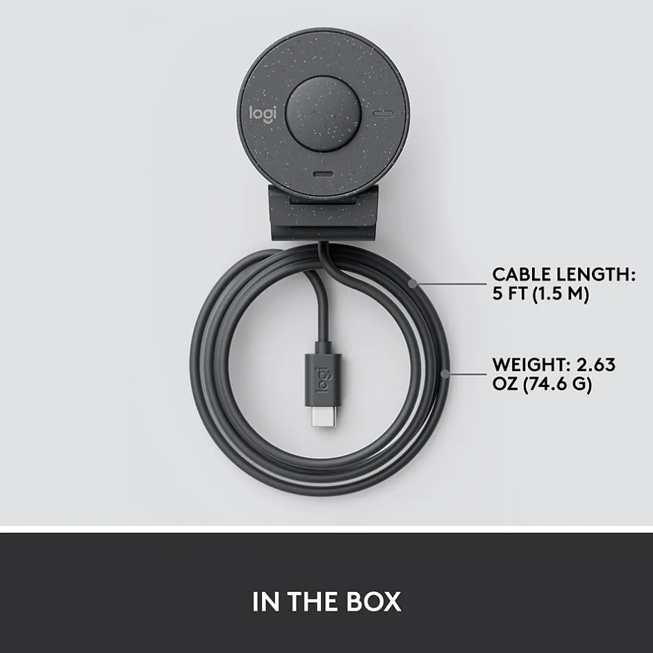 Say hello to better video calls with the Logitech Brio 300, a stylish and compact 1080p webcam with the auto light correction to compensate for challenging light environments. Brio 300 is available in three colors to suit your personality and features a subtly speckled design — the result of using recycled plastic. Now you can be your best self on every video call. Brio 300 is easy to set up with USB-C connectivity to ensure that you are seen and heard clearly on every video call.