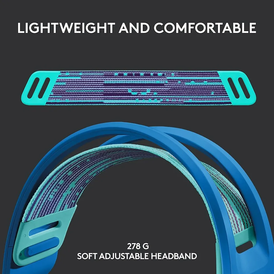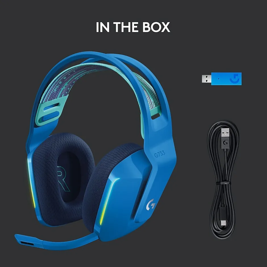 Meet Logitech G Series G733, a gaming headset designed to suit your style. Embrace total wireless with 2.4 GHZ LIGHTSPEED wireless, featuring up to 65′ of range and up to 29 hours of battery life. Customize how you look and sound in G HUB with dual-zone, front-facing lightsync RGB and Blue VO!CE real-time voice filters. Logitech G Series G733 features advanced audio technologies, including 40 mm PRO-G audio drivers, internal acoustic chambers, and DTS Headphone:X 2.0. Play in comfort with dual-layer memory foam earcups, suspension headband design and ultra lightweight headset at just 278 g.