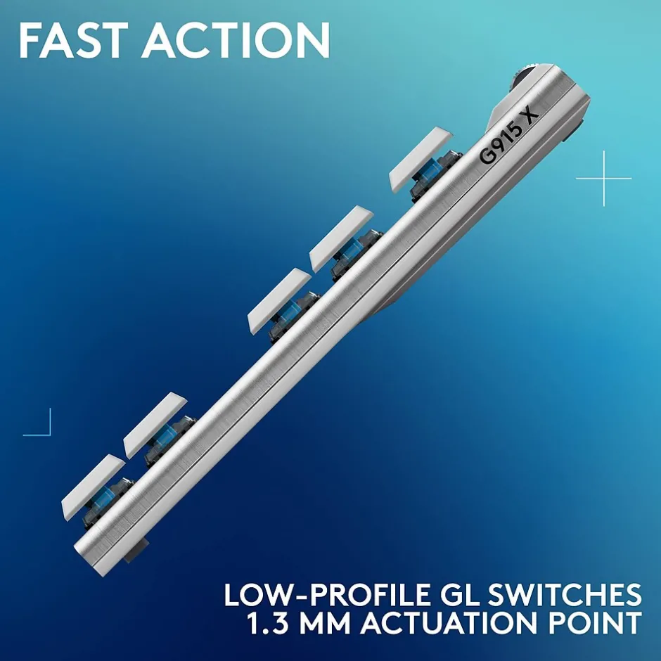 Unleash Your Gaming Potential with the Logitech G915 X LIGHTSPEED TKL Wireless Gaming Keyboard Elevate your gaming experience with the Logitech G915 X LIGHTSPEED TKL, designed for gamers who demand speed, precision, and customization. This tenkeyless keyboard features tri-mode connectivity, allowing you to effortlessly switch between LIGHTSPEED wireless, Bluetooth, and wired modes, ensuring seamless integration with all your devices. With low-profile GL Tactile mechanical switches that offer a 1.3 mm actuation point, you can enjoy lightning-fast response times and enhanced accuracy for every action. The ultra-slim design, combined with durable double-shot PBT keycaps and a brushed aluminum alloy top plate, provides both style and sturdiness for intense gaming sessions. Experience vibrant LIGHTSYNC RGB lighting with approximately 16.8 million colors, enabling you to create personalized illumination and immersive themes that sync with your gameplay. Take control with KEYCONTROL, allowing up to 15 customizable functions per key, and enjoy easy access to media controls for seamless entertainment. Key Features: Tri-Mode Connectivity: LIGHTSPEED wireless, Bluetooth, and wired modes for versatile use Low-Profile Mechanical Switches: Fast actuation for increased performance Ultra-Slim Design: Sleek and compact for a clutter-free setup Customizable LIGHTSYNC RGB: 16.8 million colors for personalized lighting effects KEYCONTROL: Up to 15 programmable functions per key for complete control Upgrade to the Logitech G915 X LIGHTSPEED TKL Wireless Gaming Keyboard and experience the future of gaming today!
