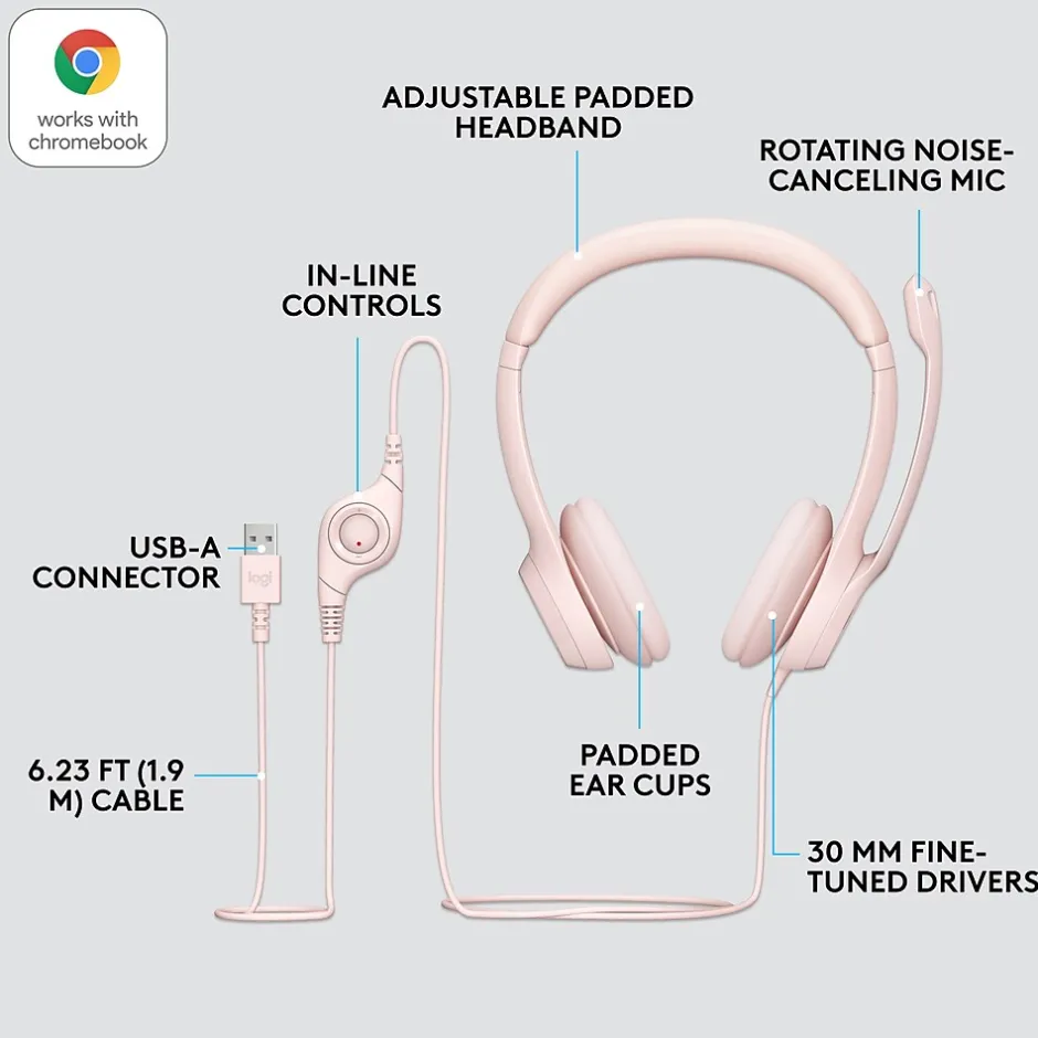Experience clear audio for video meetings with a simple plug-and-play USB connection and a noise-canceling mic. Rigid left-sided mic boom is moveable and can be tucked out of the way when you’re not using it. Handy in-line controls let you adjust volume or mute without interrupting calls. Fine-tuned drivers deliver enhanced digital audio for meetings, music, and more.