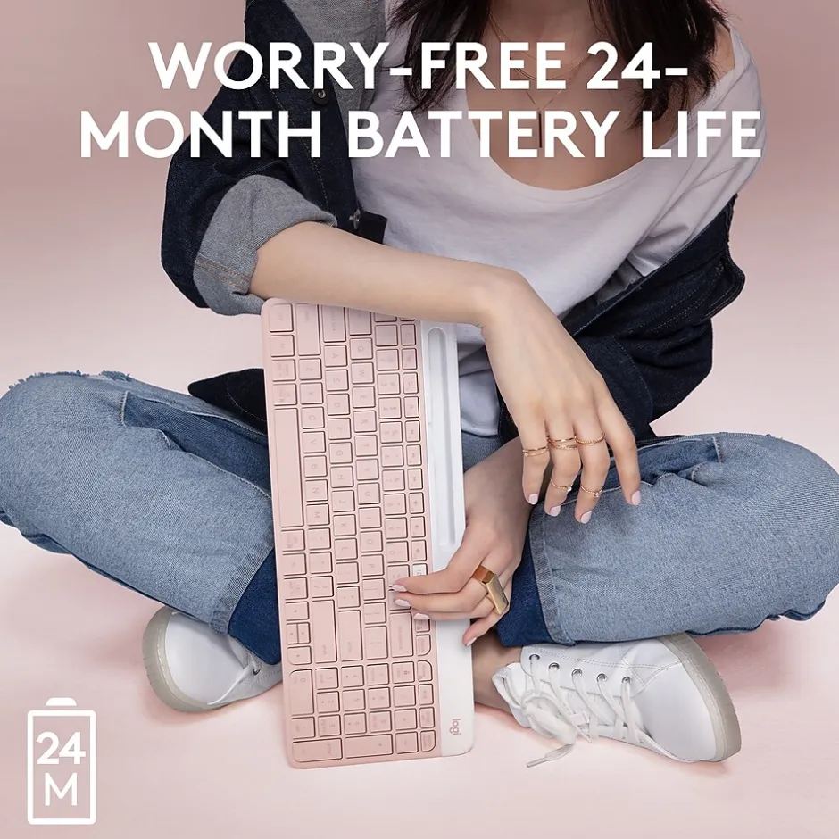 - WORRY-FREE BATTERY LIFE: Enjoy 24-month battery life* thanks to an auto-sleep feature that kicks in when you’re not typing for a worry-free experience.