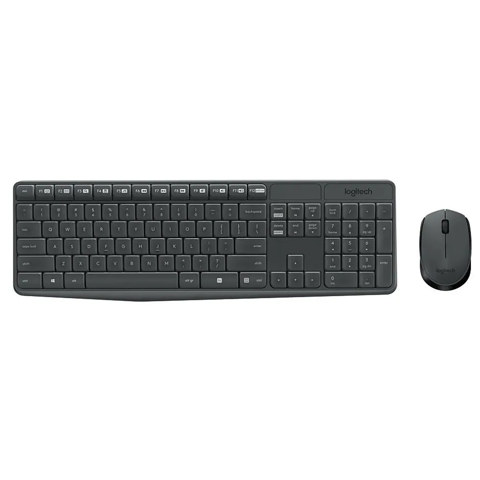 Control your computer with this practical Logitech MK235 keyboard and mouse set. The USB wireless design is easy to install so you can get to work faster, and the optical tracking on the mouse provides accurate, smooth movement. This keyboard set is made from heavy, durable materials to help it withstand busy offices and daily use, and the full-size and standard layout makes it easy to type and enter data. The mouse and keyboard come in standard black color for a professional look.