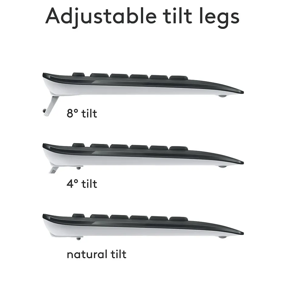 - Precision Typing: An instantly familiar experience, type with ease and comfort on this full-size wireless keyboard, featuring reduced noise, palm rest, spill-resistant design, adjustable tilt legs