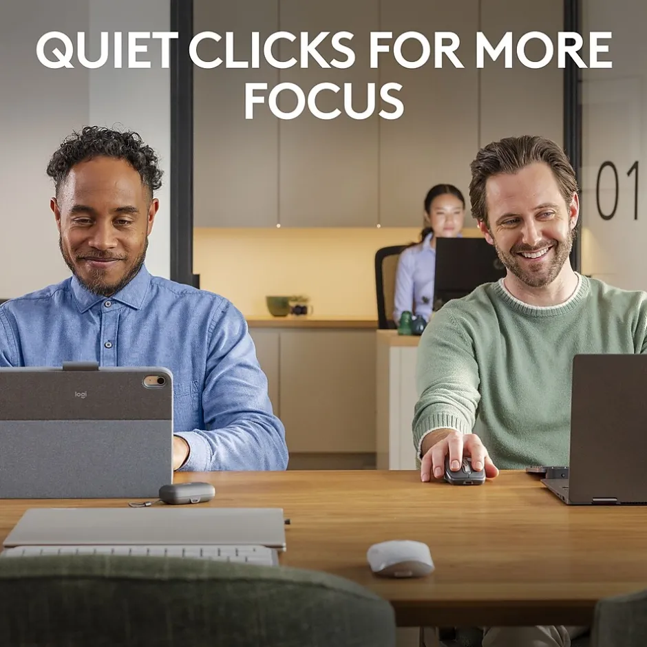 - Quiet Clicks keep the same satisfying feel but with less click noise (compared to MX Anywhere 3) for less distraction and more focus