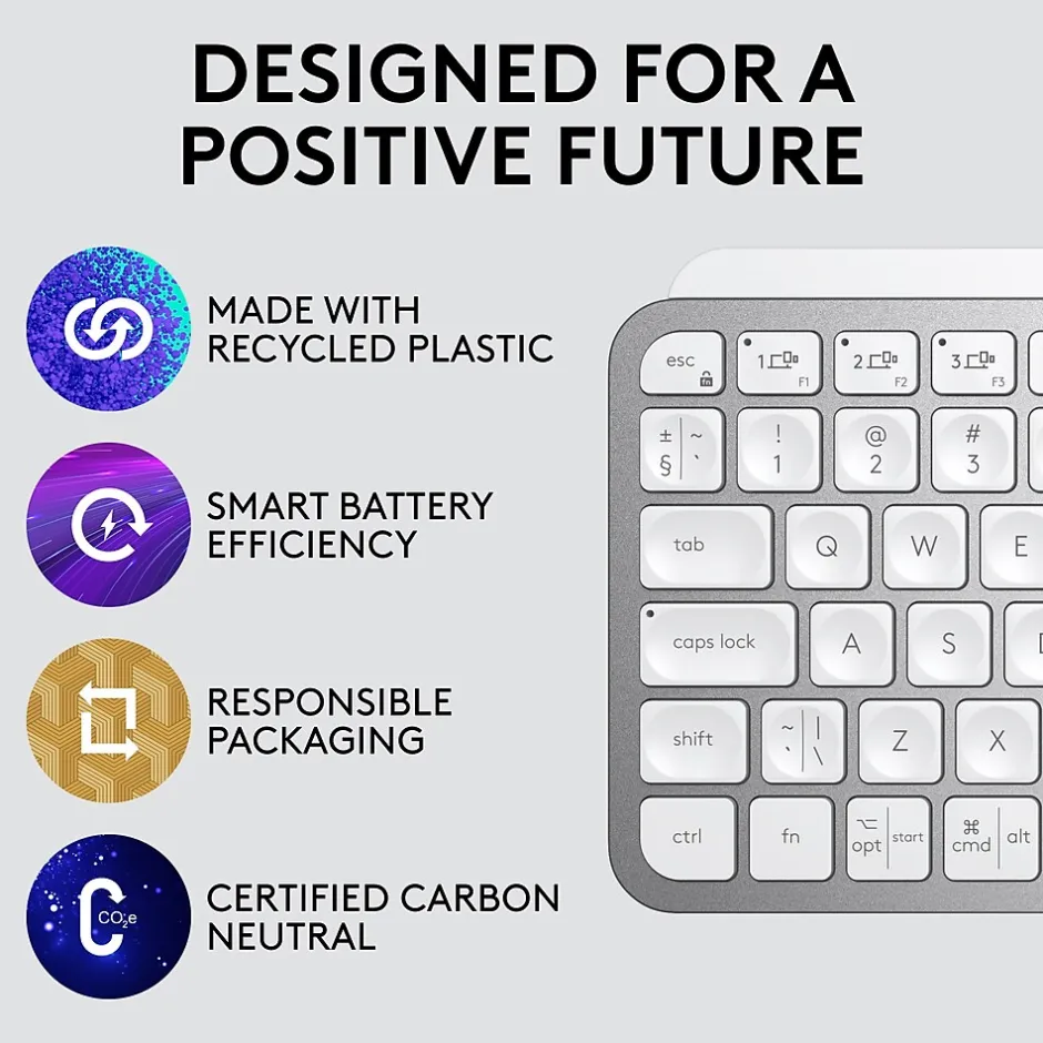 Introducing MX Keys Mini – a smaller, smarter, and mightier keyboard made for creators. Type with confidence on a keyboard crafted for efficiency, stability, and precision. The ergonomic design aligns your shoulders, allowing you to place your mouse closer to your keyboard for less arm reaching, more comfort, and improved body posture. Easily pair MX Keys Mini via Bluetooth Low Energy with up to three devices. Smart Keys (requires Logitech Options software, available for Windows and macOS) transform the way you work, with a Dictation key to talk to text with the press of a button, an Emoji key to instantly open your emoji window, and a Mic Mute/Unmute button for smooth video calls. Team up with a Flow enabled MX Master 3 or MX Anywhere 3, and type on multiple devices in one fluid workflow. Transfer files, documents, and images across computers and macOS and Windows.