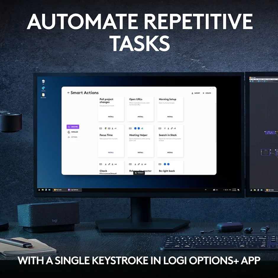 - Easily create and share time-saving Smart Actions shortcuts to perform multiple actions with a single keystroke with the Logi Options+ app