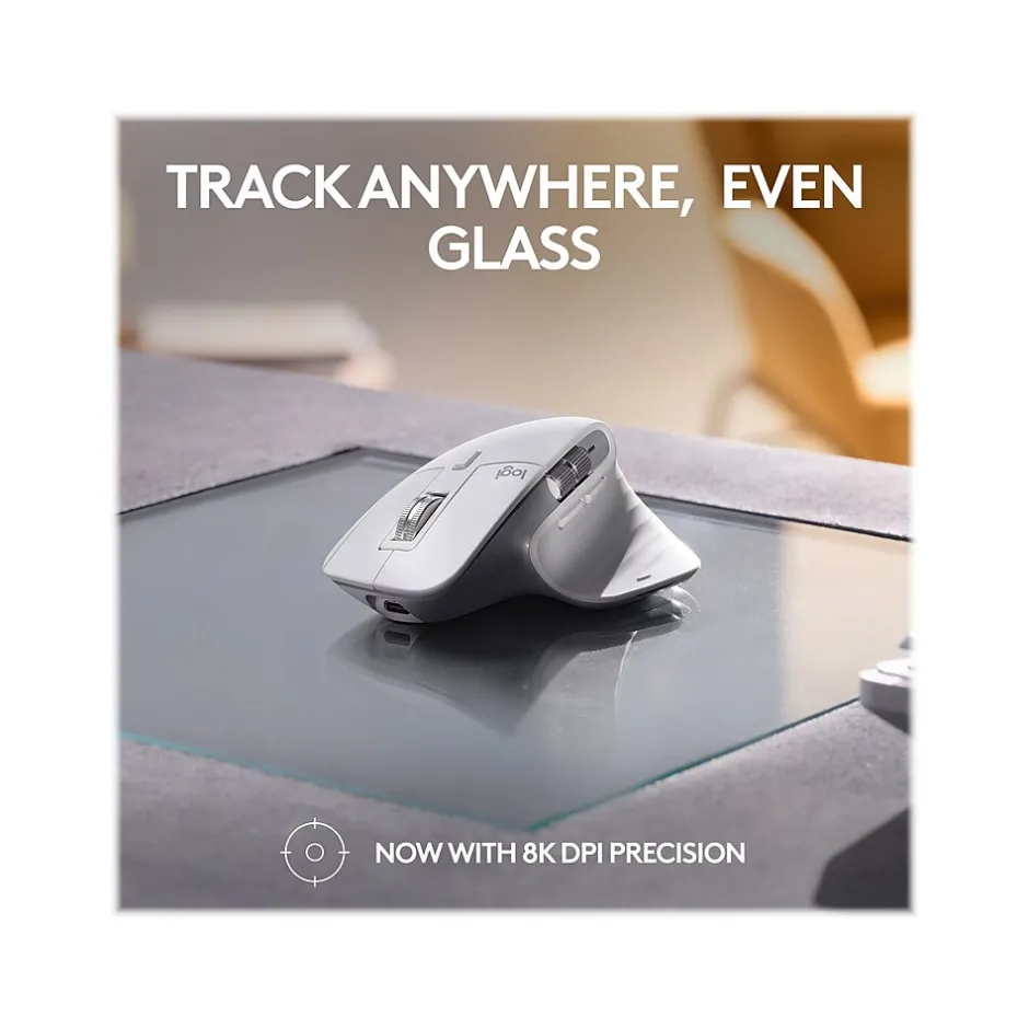 - Features an 8000 dpi track-on-glass sensor and Quiet Clicks with 90% less click noise