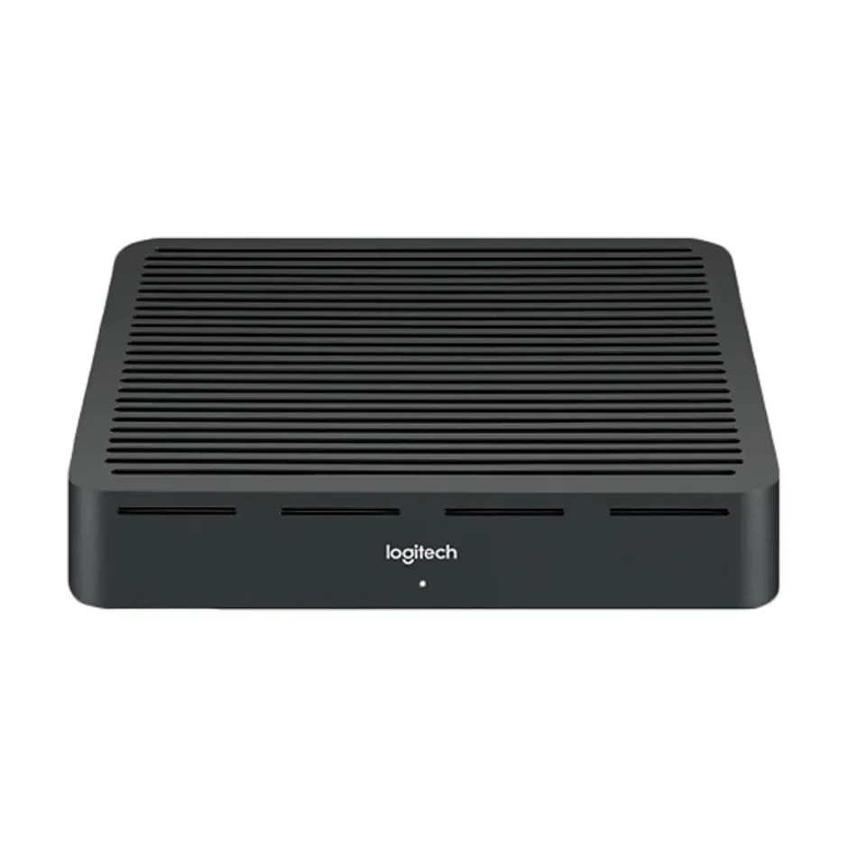 Logitech video conferencing accessory table hub connects via a single Cat 6a cable to the Rally display hub. Active speaker detection analyzes audio from up to 7 mic pods and 56 beams every 8ms. The device is also equipped with Bluetooth wireless technology.