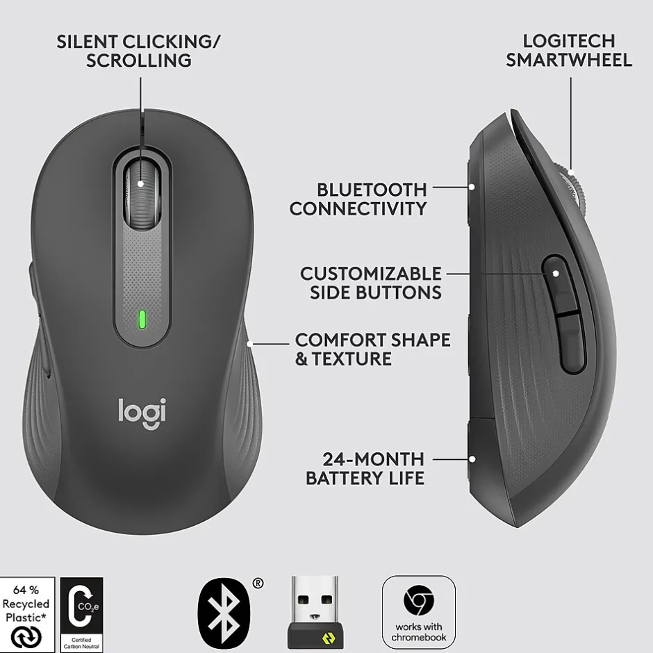- Works on multiple platforms: Experience seamless compatibility with Windows, macOS, Linux, Chrome OS, ipadOS, and Android operating systems with Logitech Signature M650 wireless Bluetooth mouse