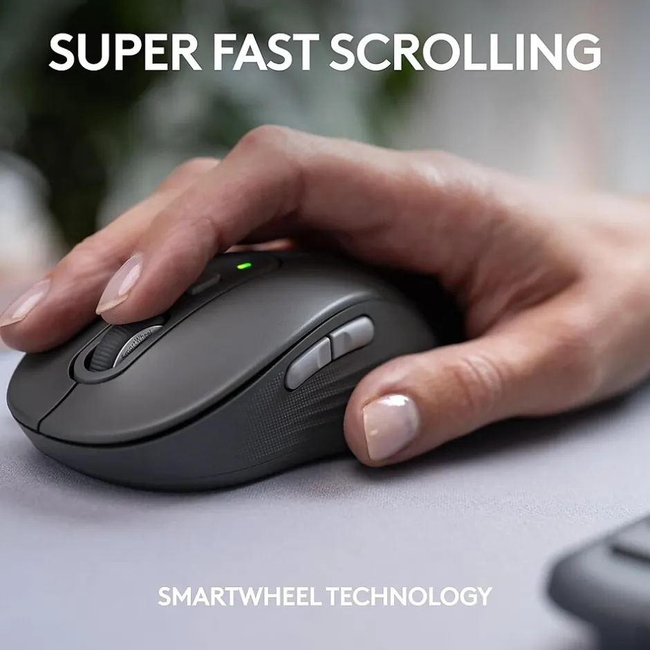 Welcome to a new standard for wireless keyboards and mice. Signature Slim MK955 combines the slim profile and laptop-style typing experience that employees desire, plus a contoured mouse shaped for comfort. It features precise and super fast scrolling along with multi-device switching for elevated productivity. With quiet typing and clicking, this combo is ideal for open workspaces.This combo works with Mac, Windows, and ChromeOS (6) (7); includes Logi Bolt for reliable and secure wireless connections; and is easy to deploy. The plastic parts are made with a minimum of 62% post-consumer recycled plastic (2), so it’s a choice you’ll feel good about.