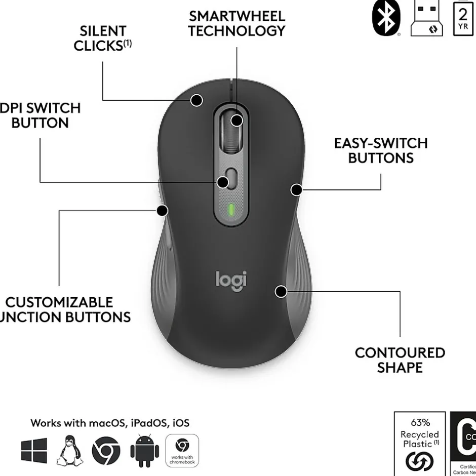 - Works Across Devices: Connect wirelessly via Logi Bolt or Bluetooth and seamlessly switch between 3 of your devices with a press of the Easy-Switch button for easy multitasking
