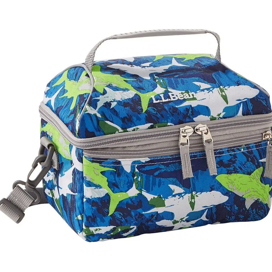 A rugged flip-top lunch box is insulated to keep food and drinks cool. Comes in a larger size for older kids or bigger appetites.