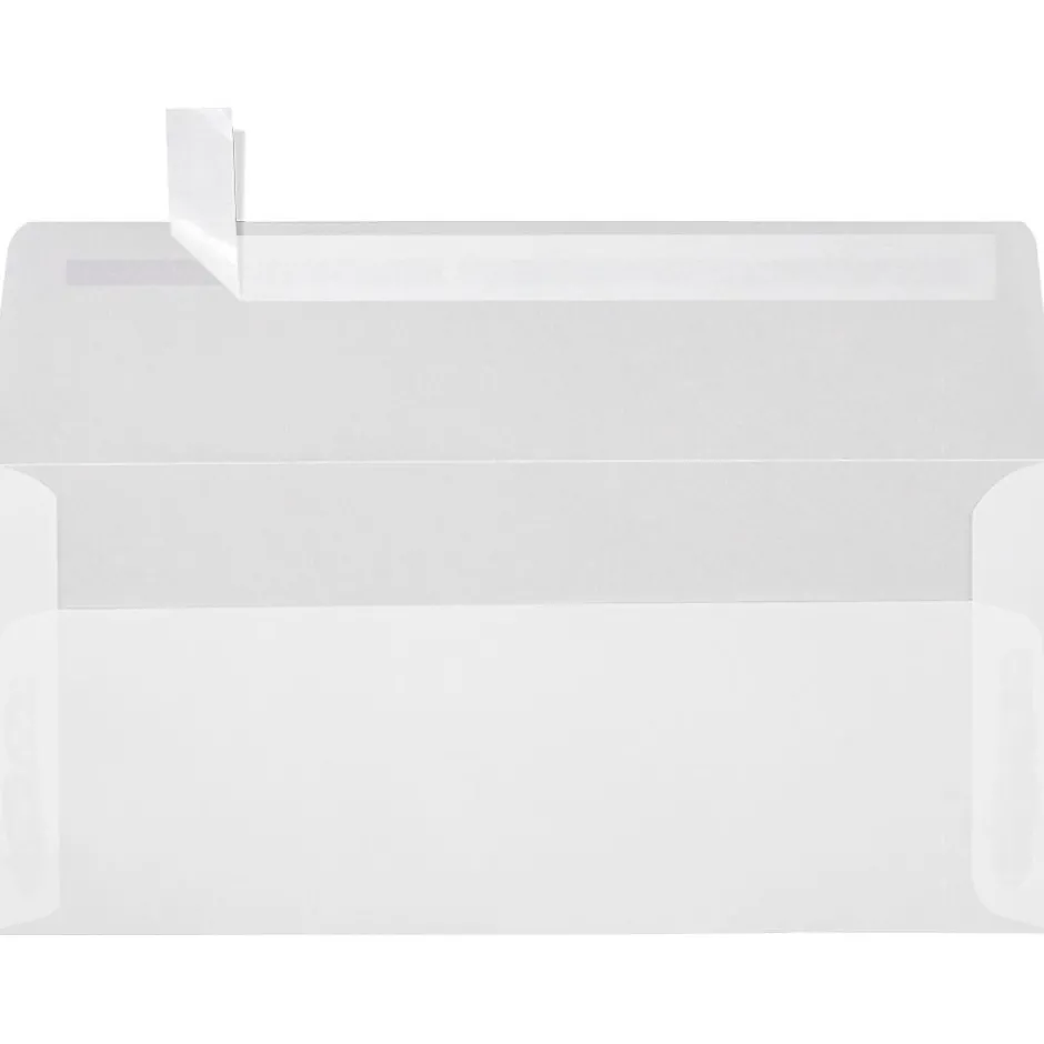 LUX® Size 10 square flap envelope in clear translucent color has press and peel design for secure sealing. 4 1/8″ x 9 1/2″ Envelope compatible with laser printers has 70 lbs paper weight and is sold as 250 per box.